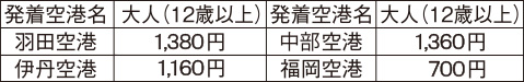 ※別途、国内線旅客取扱施設使用料が各空港での出発・到着に際し、必要となります。詳細は下記表をご確認ください。