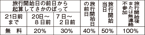 ●お客様のご都合で出発日又はコースを変更された場合も下記の取消料の対象となります。