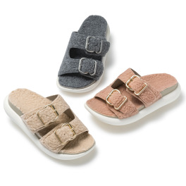 足裏3点アーチを正しい位置でサポートし、足裏にフィット。指圧代用器として筋肉のコリをほぐす室内履き。