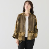ハンドクラフト感あふれる素材の組み合わせが圧巻。ゆったりシルエットで1枚でも羽織りとしても優美。