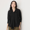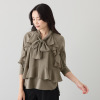 立体的なフリルが奏でる大人の秋の装い。綿混ベア天竺素材の心地良さとシフォンの軽やかさが共鳴する一着。