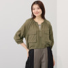 スタイル・ラヴィー 麻混カラミ ギャザーアクセント カーディガンのような ブルゾン