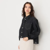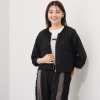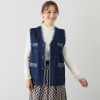 デニムとツイードの絶妙なハーモニー。モードなボタン使いで、洗練された印象を演出します。