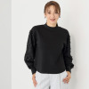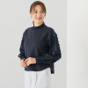 起毛加工の柔らかな肌触りに包まれる上質な一枚。チュールメッシュが魅せる上品な抜け感が華やかな印象。