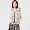 立体的なスタンドカラーとワッペン風編み込みがポイント。ワードローブに加えておしゃれの幅を広げてみて。