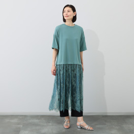 シルバーミントシュガー 柔らかカットソー 裾たっぷりティアード 半袖ワンピース