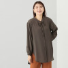 ゆったりとしたオーバーサイズのブラウスとインナーチュニックをセットで。今っぽい抜け感が細見えを演出。