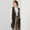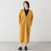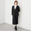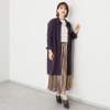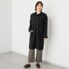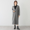 メタリックボタンとグログラントリミングが織り成す都会的な装い。ロング丈でスタイルアップも叶えます。