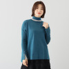 手洗い可能な柔らか天竺ニットで日々の着こなしを快適に。すっきりハイネックと絶妙なゆとりで体形カバー。