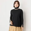 柔らかな肌触りで微光沢感があるきれいめ素材。シンプルながらも小技の効いた配色デザインが目を惹く一枚。