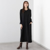 しっかり体形カバー、でも決して野暮ったくない。縦長ラインで視線を上へ導き、シャープな印象を与えます。