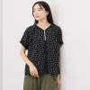 オルテンジア ちょうど良い大人ドット柄 ギャザー& 貝ボタンで華やぐ デザインブラウス