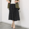 小川に流れる花びらのようなランダムドット。リブ使いのデザインが装いに洗練さと華やかさを添えます。