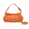 ギャザーによる優美な曲線が魅せるレザーの表情。ハンドとショルダーの2通りで使える、実用的な一品。