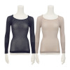 パフィールソフト 日本製 軽くて薄くて暖かい キュプラ混 ラウンドネック 長袖インナー