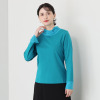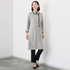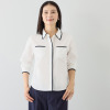 スタンドネックでお顔周りすっきり、視線を集める配色ライン。気になる二の腕をカバーする袖丈も魅力。
