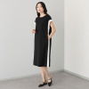エレガントさとカジュアルさが絶妙に融合。左右の縦のラインで細見えし、大人の女性らしさを引き立てます。
