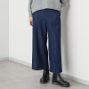 レッグラインを拾いにくく、すっきり見せる工夫満載。ワイドシルエットとセンターラインで脚長効果も。