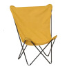 高さのある背もたれと一枚張りの布で包み込むような座り心地。折りたためる便利さと床にやさしい設計。