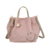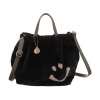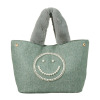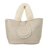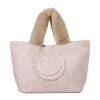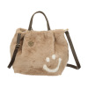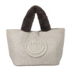 クーコ スマイリーフェイス パールビジュウ刺しゅう ふわふわハンドルバッグ
