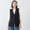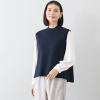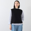 シャツもブラウスも自在に合わせられる万能ニットベスト。後ろ身頃のパール風ビジュウがアクセント!