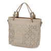 ラルジュ プレートチャーム付 テープアクセント 刺しゅう 2ウェイ舟形トートバッグ