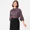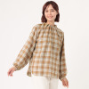 イフェメル/ ダブルフェーストーキョー 日本製 ハイネック ゴムギャザー チェックブラウス