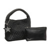 グッシオイタリー 柔らかレザータッチ 編み込みメッシュ トートバッグ&ポーチ <星形チャーム付>