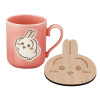 マグカップの絵柄部分に凹凸加工をほどこしたこだわり仕様。お顔のコースターも付いた、むちゃかわアイテム。