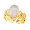 涼しげな空気感をまとったスリーストーンリング。それぞれの天然石に願いを込めながら身に着けて。