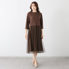 胸元で優雅に咲き誇る立体フラワーモティーフ。普段使いからお出かけシーンまで、幅広く活躍する一着。