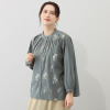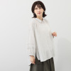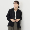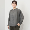 柔らかコットンに繊細な刺しゅうが魅力。バンドカラーのギャザーデザインで、大人ナチュラルな装いを。