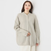 カシミヤのような柔らかタッチのラムウールを使用。袖口と裾のリブレスデザインで、すっきりとした印象に。