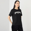シルクのような光沢をまとう贅沢な綿100%素材。ロゴプリントとラインストーンで大人カジュアルを表現。