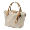 ラルジュ プレートチャーム付 テープアクセント 刺しゅう 2ウェイ舟形トートバッグ