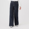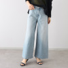 ステッチで遊ぶワイドデニム。ホームソーイング風のヌケ感と裾の深折りがトレンド感を醸し出します。