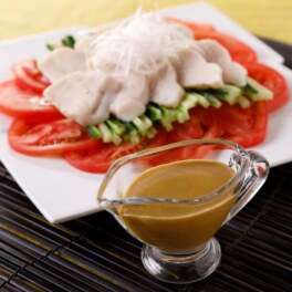 細長い瓶で届きます。ちょっと量は少なめです。味は鶏肉や豚肉など茹でた物に合います。中華風のちょっと変わった風味がします。