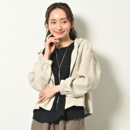 フードの内側の処理が綺麗で感動。さすが。夏場の羽織としては、肌離れ良さそうです。着丈考えたら、わたし的にはMで良かったな。もともとゆったり着るのが好きなので、身幅も大きすぎってことはなく、軽く羽織れました。一緒に購入した、スカート見えパンツのサンド色と、リブコットンタンクトップのブラックと合わせて着るのが楽しみです。