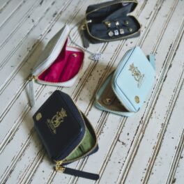 小物なので色で遊んでもよかったのですが アクセの見やすさを優先しました 中のスウェードもシックで皮のピンクがチラッと可愛い感じで気に入りました